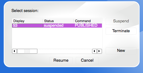 NOTE: if you have previously run a session and exited your x2go client without logging out of that session, you'll see a window like this: